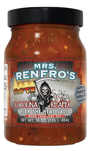 Mrs. Renfro's Carolina Reaper Salsa is a collaboration with Ed Currie of PuckerButt Pepper Company in Fort Mill, S.C., home to Smokin' Ed's Carolina Reaper, which at the time it was bred in 2013, held the Guinness World Record for hottest pepper. This record may continue to be broken but the flavor and bouquet of Carolina Reaper, not to mention the heat, have continued to grow in popularity.