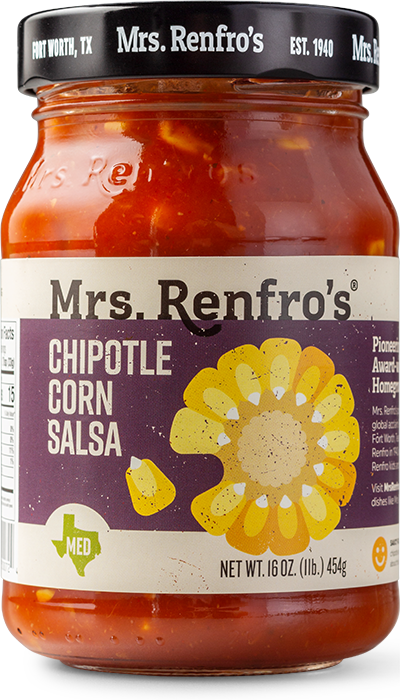 Mrs. Renfro's Medium Salsa, at a medium heat level, is moderately spicy. This salsa is gluten-free, with no high-fructose corn syrup or added sugar. Made in Fort Worth, Texas.